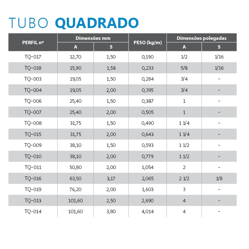 Fornecida na liga 6063 T5 * Obs.: Outras ligas e medidas consulte nossa equipe de vendas através do e-mail [email protected] ou telefones 11 3186.3550 ou 11 93713.3421 (WhatsApp)
